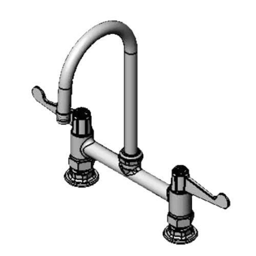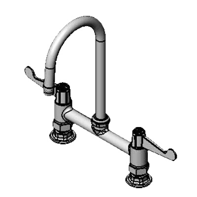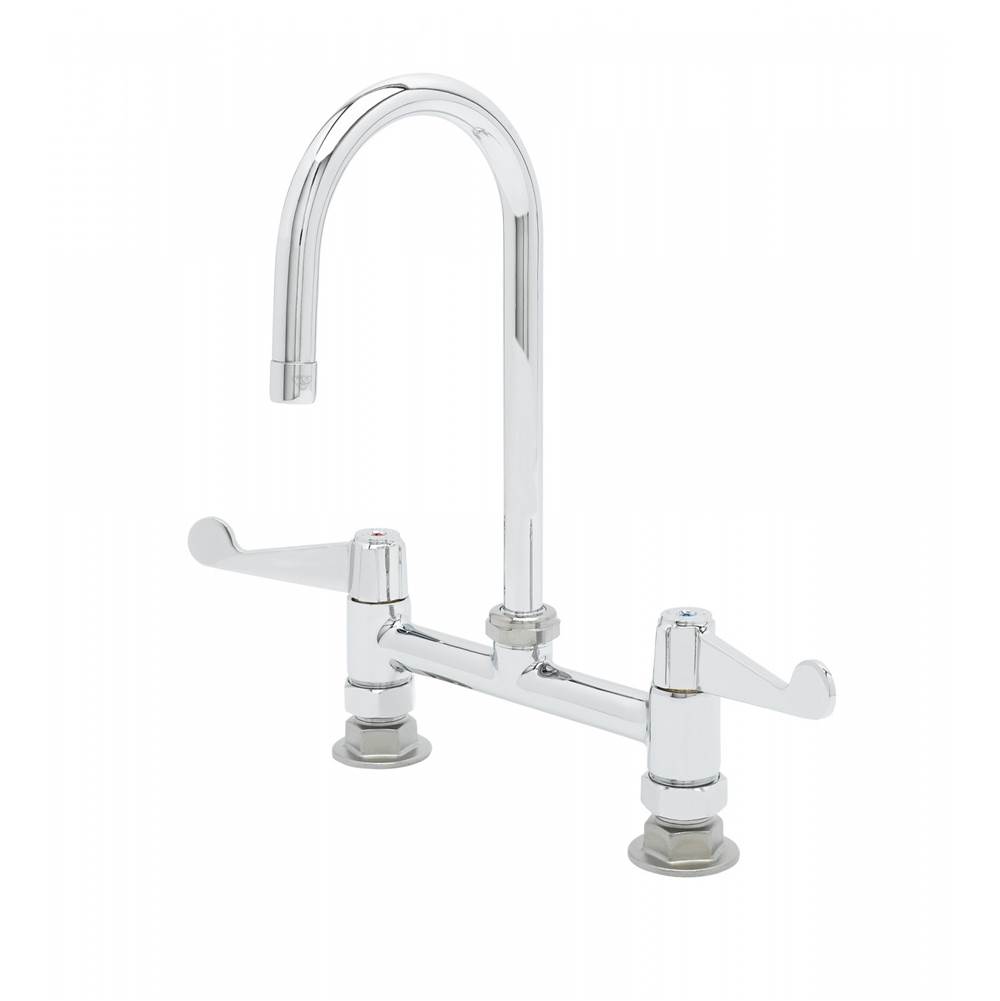 T&S Brass 5F-8DWS05 Deck Mount Faucet, 5-1/2" Swivel Gooseneck, 4" Wrist Handles, 1/2"NPT Supply Nipple Kit, 8"