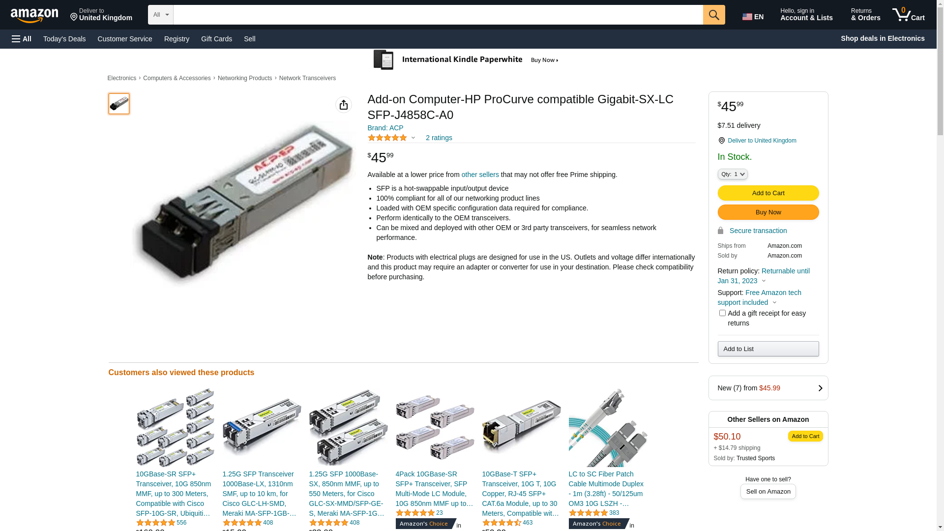 - Addon - network upgrades - j4858c-ao - 1000bsx sfp mmf lc f/hp 850nm550m 100% compatible