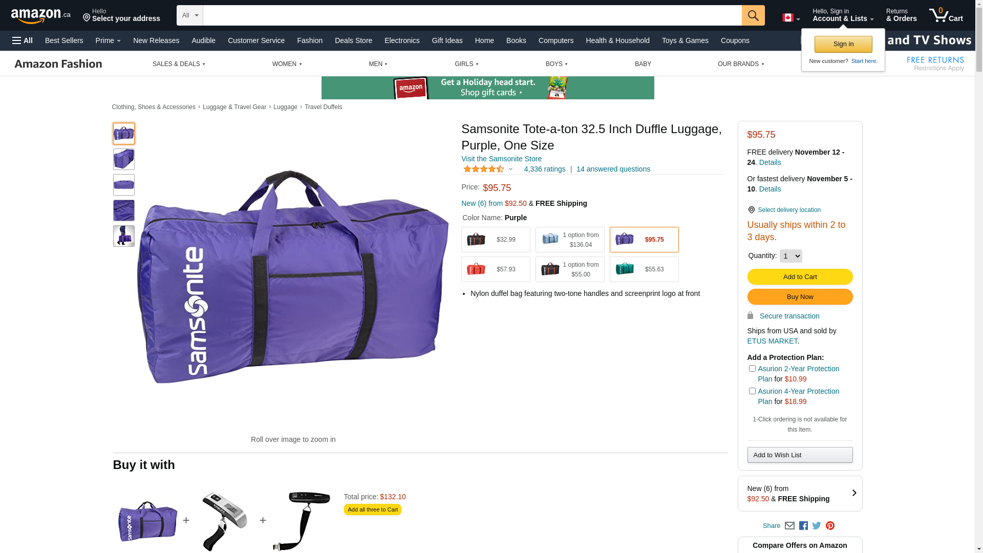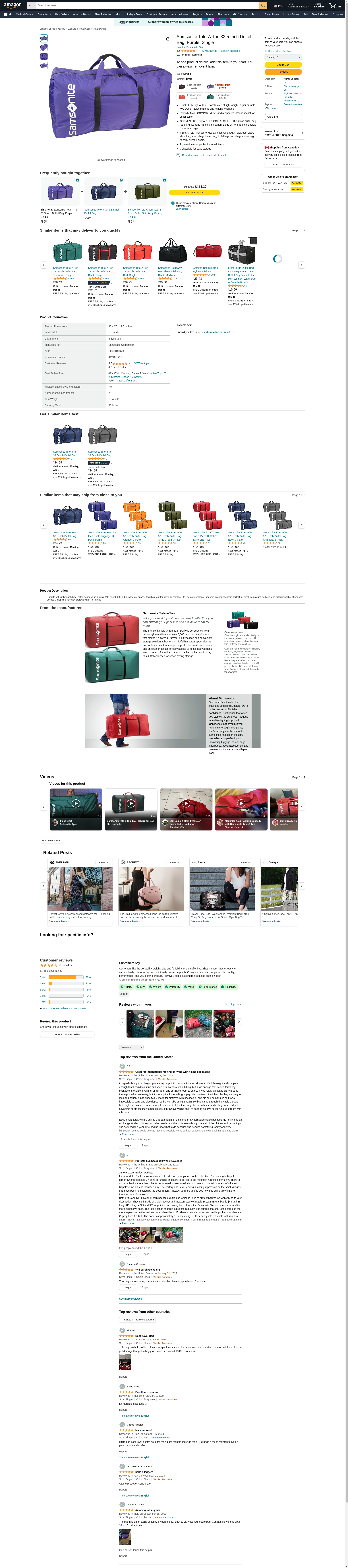Samsonite Tote-A-Ton 32.5-Inch Duffel Bag, Purple, Single: Maxedbuy.com