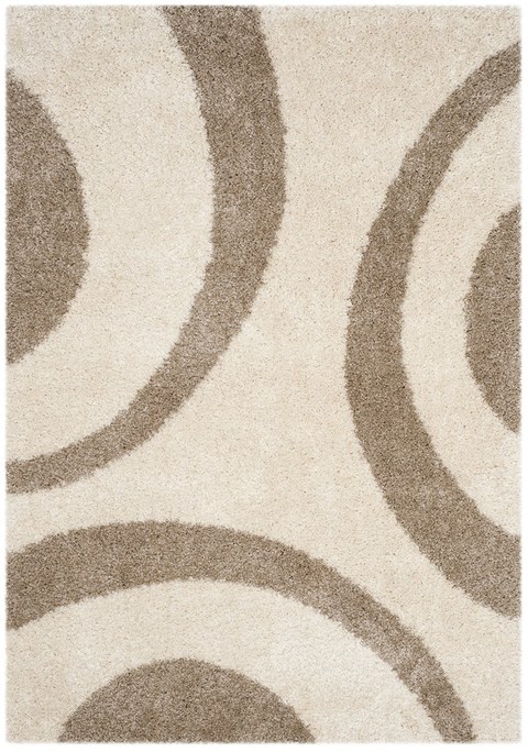 SAFAVIEH Portofino Shag Collection Area Rug - 6'7" x 9'2", Ivory & Beige, Modern Abstract Design, Non-Shedding & Easy Care, 2-inch Thick Ideal for High Traffic Areas in Living Room, Bedroom (PTS213B)