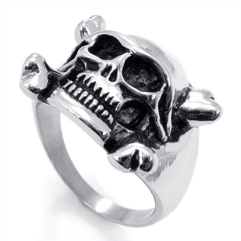 CET Domain SZ11-1078-11 Men's Stylish Single-Skull Titanium Ring Silver Steel-Size 11