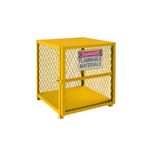 - Expanded metal sides, back and door, for ventilation and visibility of contents. Cylinder cradles securely hold propane tanks in place