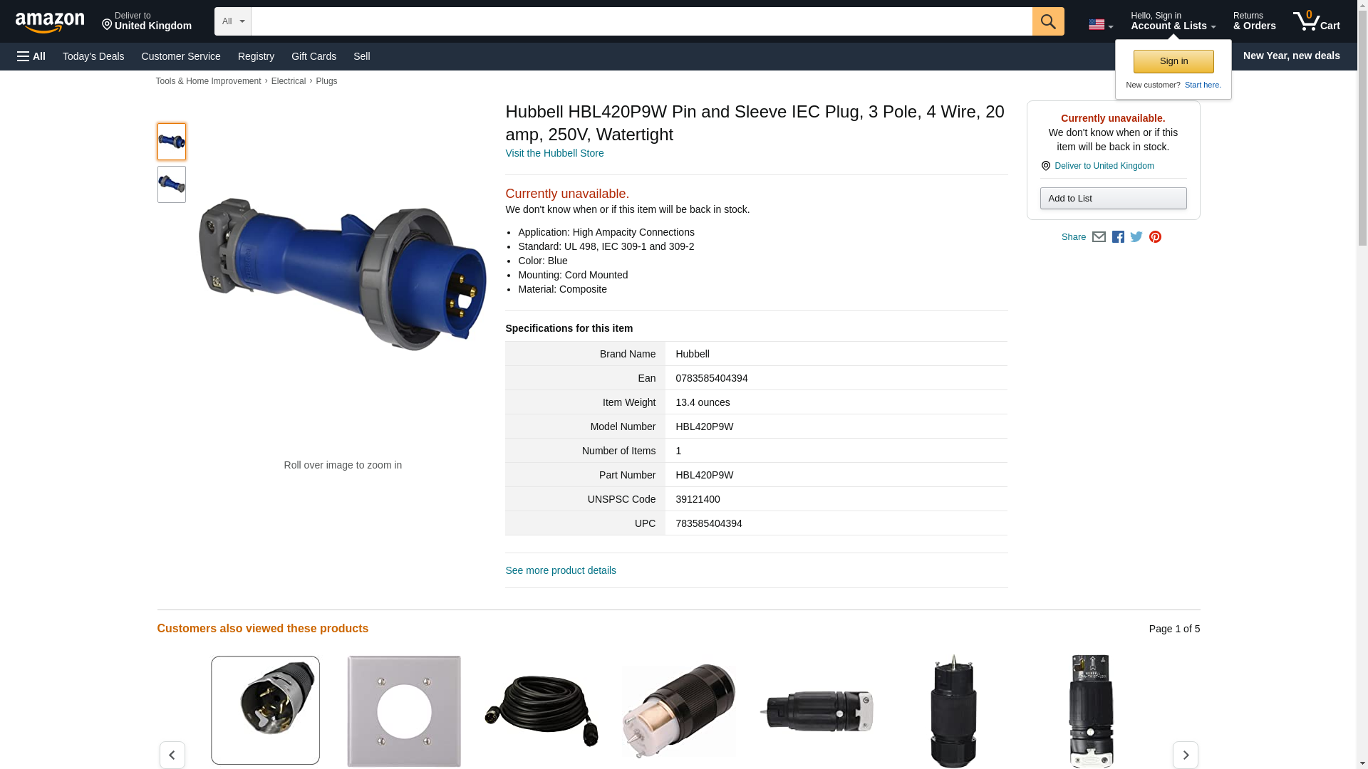 Hubbell HBL420P9W 40439 PIN and Sleeve Plug, See Image