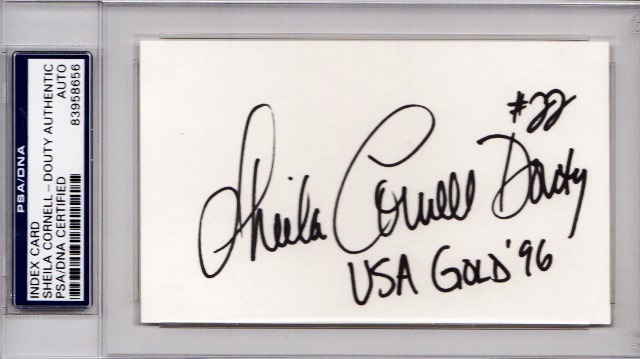 Real Deal Memorabilia 3 x 5 in. Sheila Cornell-Douty Signed - Autographed Olympic Softball Index Card with inscription