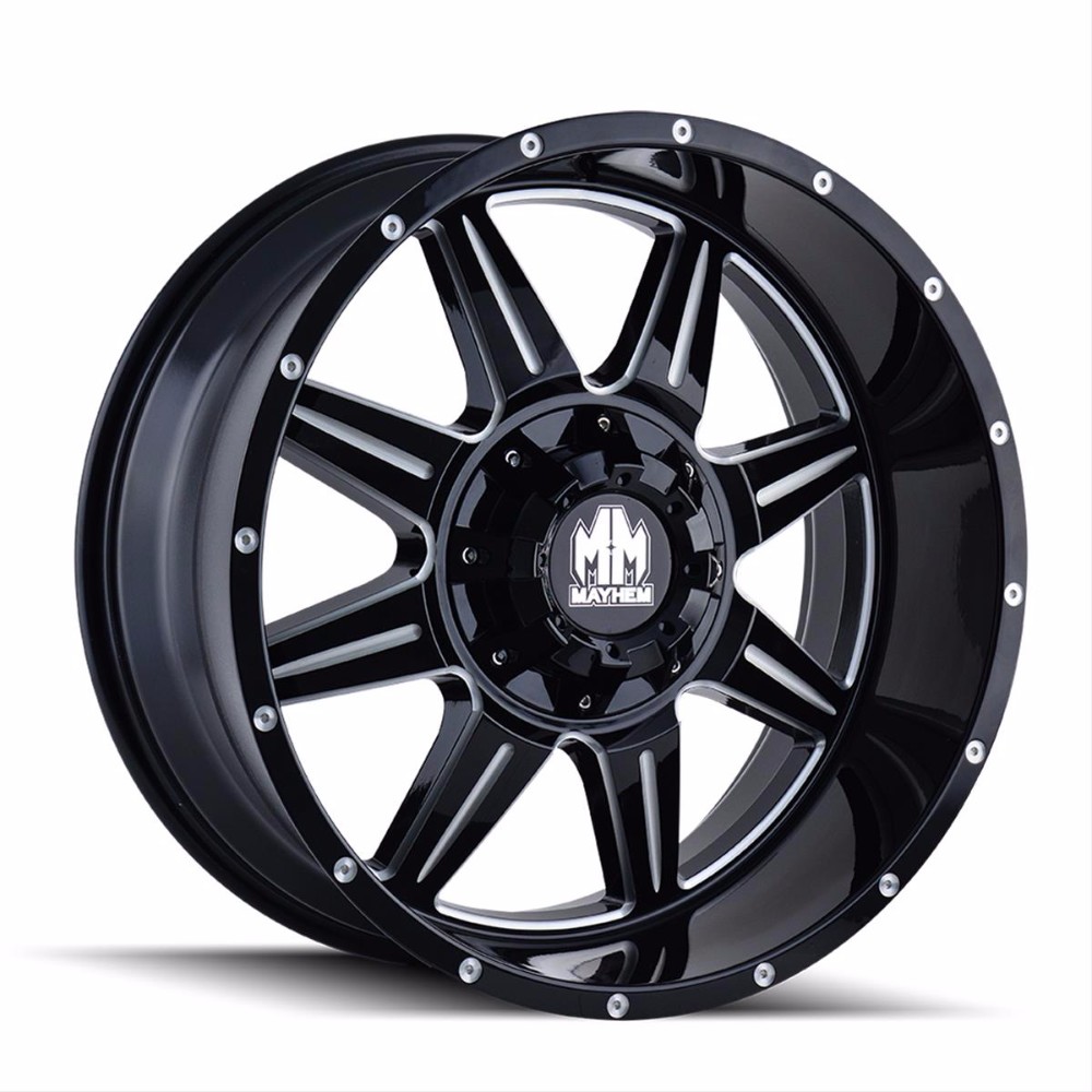 Buy Mayhem 8100 Monstir 22x10 / 8x180 BP / -19mm Offset / 124.1mm Hub Black w/ Milled Spokes Wheel - 8100-22178M for 324.45 at Armageddon Turbo & Performance