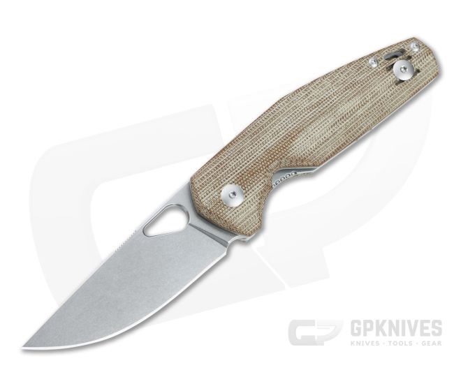 GiantMouse Nimbus V2 Stonewashed Elmax Natural Canvas Micarta Folding Knife For Sale