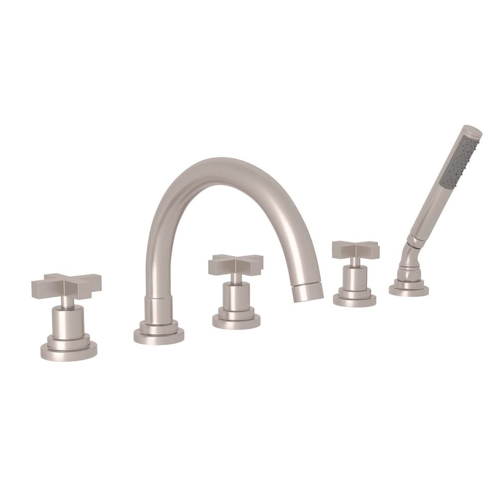 Rohl A2214XMSTN Lombardia Roman Tub Faucet with Handshower Satin Nickel Cross