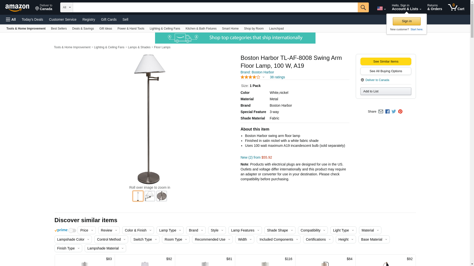 | Feature | Boston Harbor swing arm floor lamp |