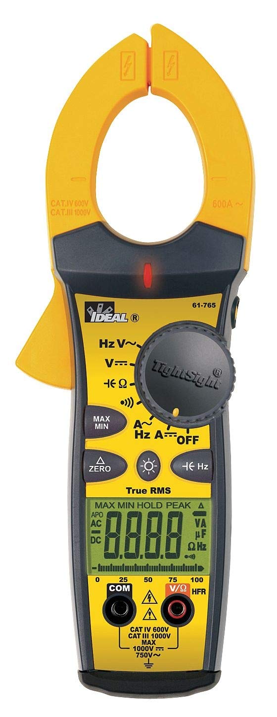 Clamp Meter Digital Clamp Meter Jaw Style Clamp On Max AC Amps 660 Max AC Volts 750 Max Ohms 999.9 Jaw Capacity 1-7/16 In. Counts 9999 Battery Type 9V Safety Rating CAT IV 600V CAT III 1000V AC Response Average Audible Continuity Yes Capacitance 999.9 Peak Hold Yes Display 4 Digit LCD Includes Leads Alligator Clips Case Instructions