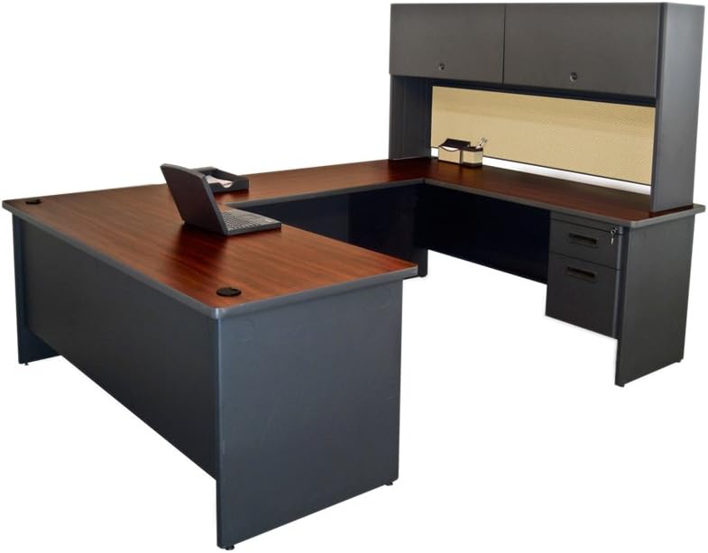 An Executive's dream workspace. Your office design will be easy and affordable with the Pronto U-shaped desk from Marvel. The Pronto credenza with file storage solutions help you to be more organized and work in comfort. This desk features an easy-care melamine laminate top with sturdy steel frame and ped(s) for a complete desk and file storage solution. Since Pronto is office furniture manufactured in the USA, it conveniently quick ships in just 5 days. Get your new office design today.