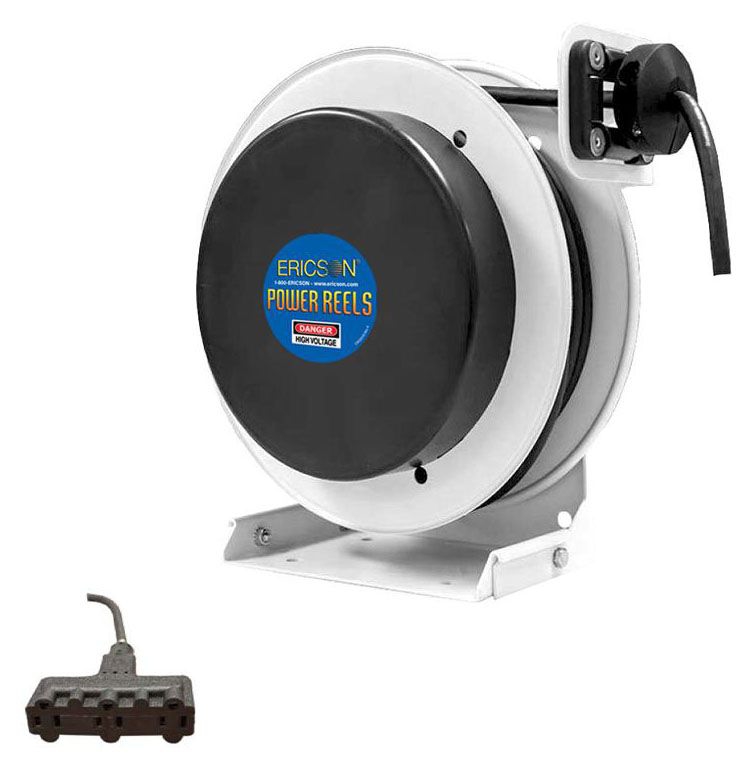 Reel, Flex Rig, Light Industrial Grade, Retractable 25 Ft Of 16/3 Sow Cable W/ Tri-Tap - (3) Nema 5-15R, Primary Feeder = Plug Nema 5-15 @ 6 Ft