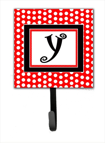 Carolines Treasures CJ1012-YSH4 Letter Y Initial Monogram - Red Black Polka Dots Leash Holder Or Key Hook