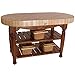 John Boos Harvest Table. 60 x 30 in. oval, 36 in. high. Maple End-Grain butcher block top 4 in. thick. 3 wicker baskets. Table base comes in 13 colors.