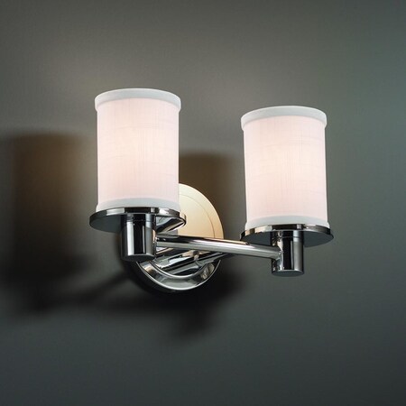 Justice Design Group Lighting FAB-8512-10-WHTE-CROM Textile Rondo 2-Light Bath Bar Cylinder with Flat Rim Polished Chrome Finish and White Fabric Shade