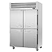 PRO Series Refrigerator, Reach-in, Two-section, 49 cu. ft., Door-open alarm beeps, Automatic fan motor delays, LED interior lighting, Extra deep, (4) half-hinged solid doors with door handles & locks, (6) stainless steel wire shelves, Stainless steel front & sides (galvanized top & back), 300 series stainless steel interior, 4" swivel casters, Top mount self-contained compressor, 1/2 HP, 115v/60/1, 9.1 Amps, NEMA 5-15P, ETL-Sanitation, cULus High-density polyurethane insulation The entire cabinet structure and solid doors are foamed-in-place using high density, CFC free polyurethane insulation. LED interior lighting Top mount compressor Refrigerator holds 33°F ~ 38°F for the best in food preservation