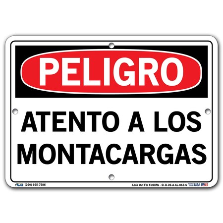 VESTIL DANGER SIGN SI-D-06-A-AL-063-S ALUMINUM .063" overall size 10.5"W x 7.5"H Look Out For Forklifts ATENTO A LOS MONTACARGAS