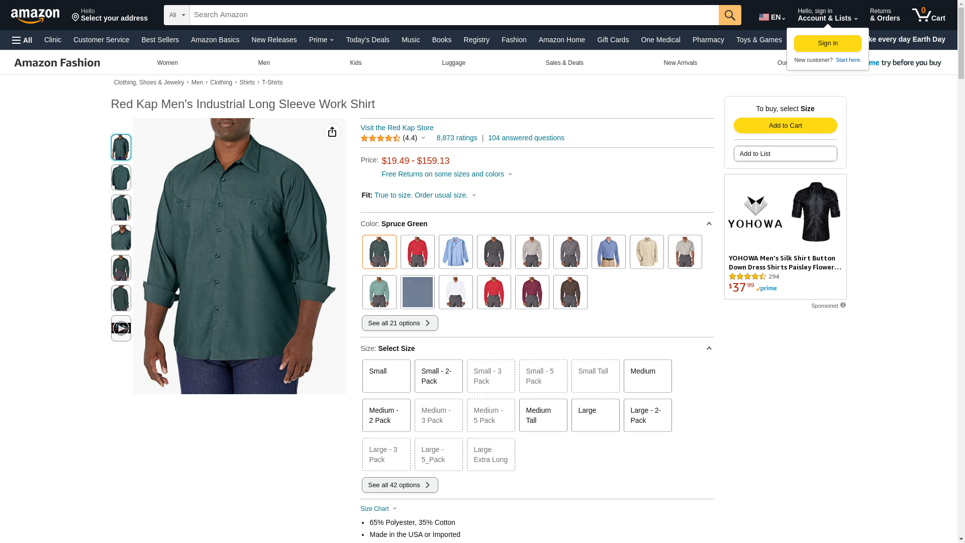 | Manufacturer | "Red Kap Men's Apparel" |