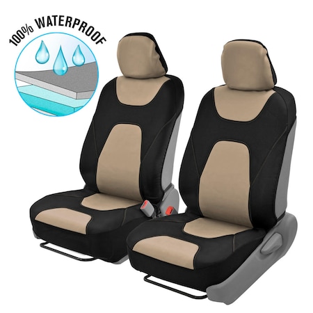 3Layer Waterproof CarSeat Covers, Modern Sideless AutoProtect, Blk&Beige