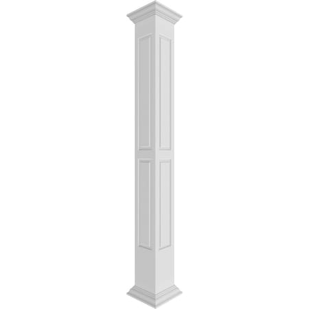Ekena Millwork 12"W x 9'H Premium Square Non-Tapered Double Raised Panel PVC Endura-Craft Column Kit, Crown Capital & Base