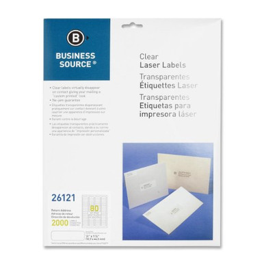 Buy Business Source BSN26121 As low as $19.11 in bulk In stock Business Source Clear Address Label - 0.50" Width X 1.75" Length - 2000 / Pack - Rectangle - Laser