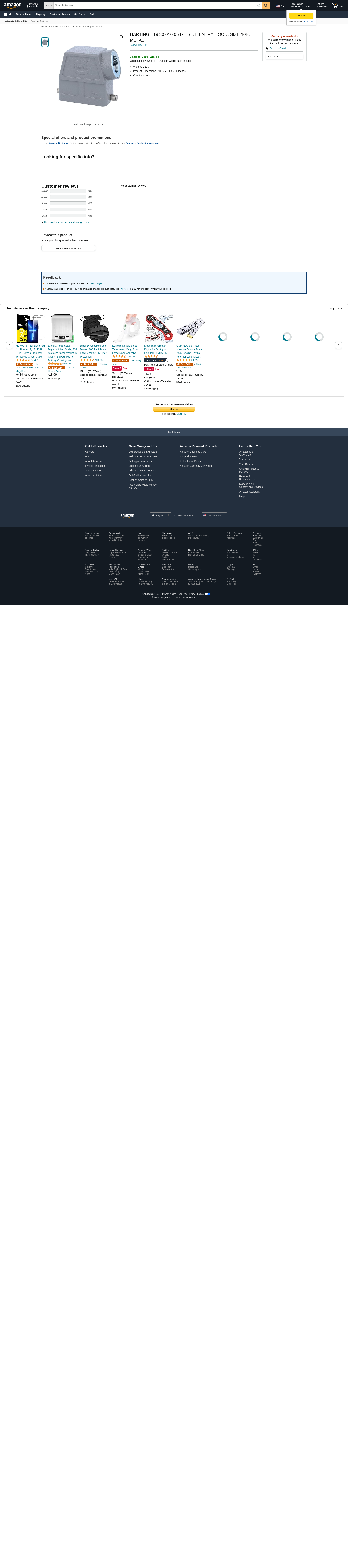 HARTING - 19 30 010 0547 - SIDE ENTRY HOOD, SIZE 10B, METAL