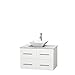 Wyndham Collection Centra 36 inch Single Bathroom Vanity in Matte White, White Carrera Marble Countertop, Pyra White Porcelain Sink, and No Mirror