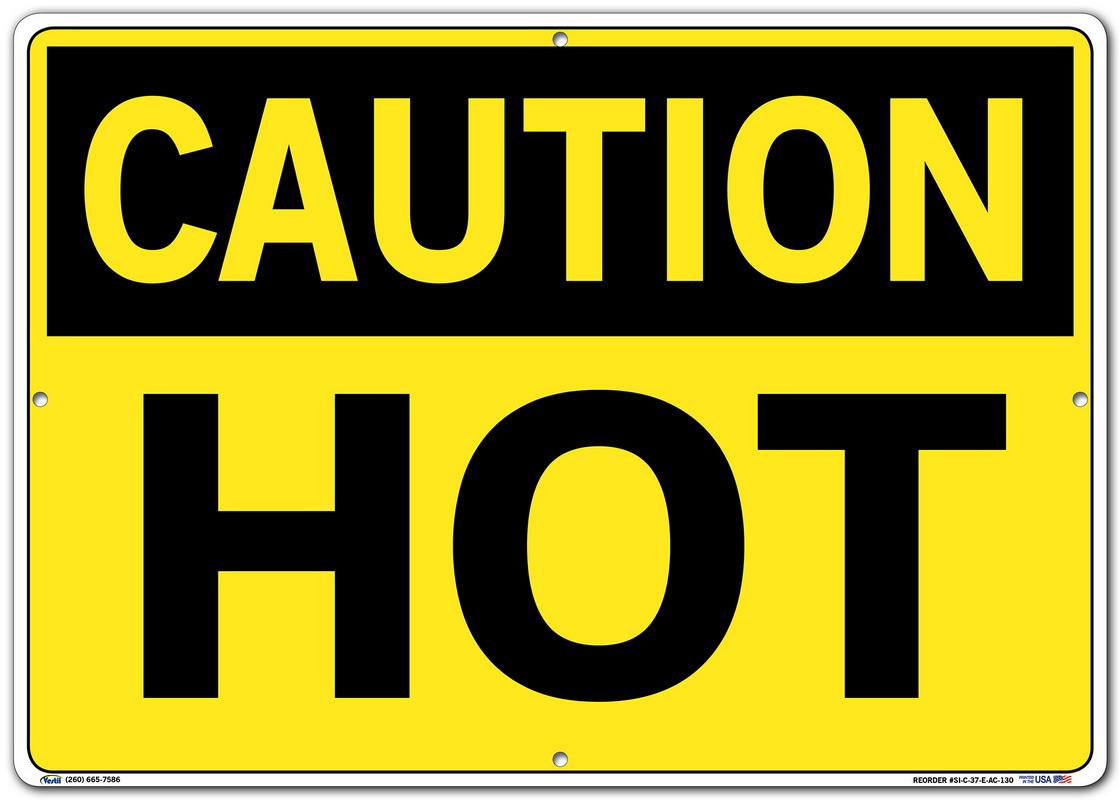 Vestil SI-C-37-E-AC-130 HOT Caution Sign, Aluminum Composite, 0.130" Overall Size, 20.5" W x 14.5" H