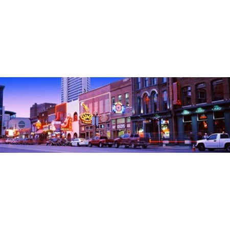 Panoramic Images Stretched Canvas Art - Street scene at dusk, Nashville, Tennessee, USA - Large 36 x 12 inch Wall Art Decor Size.