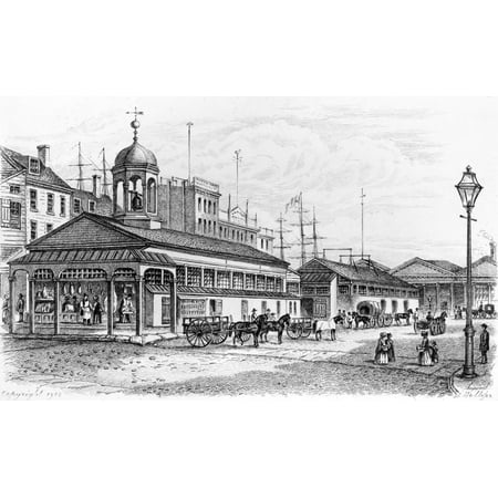 Stretched Canvas Art - Catharine Market, 1850. /Ncatharine Market In New York City, 1850. Engraving By Samuel Hollyer, 1903. - Large 24 x 36 inch Wall Art Decor Size.