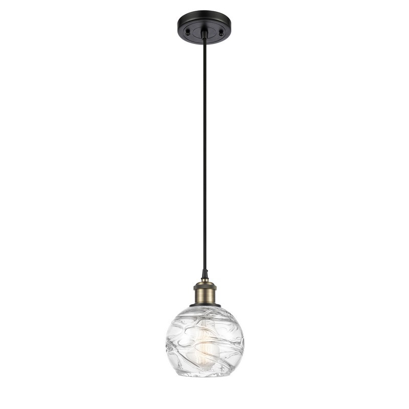 INNOVATIONS LIGHTING 516-1P-BAB-G1213-6-LED BALLSTON SMALL DECO 6 INCH ONE LIGHT CLEAR SWIRL GLASS MINI PENDANT,...