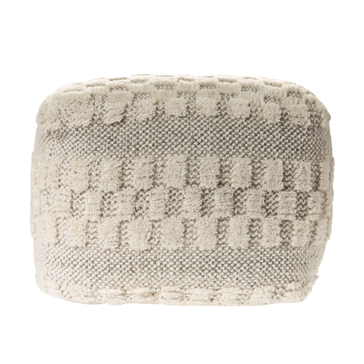 LR Resources POUFS99765BKN1612 Tufted Checkered Geometric Pouf, Cream & Light Gray