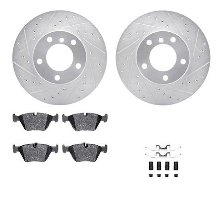 Dynamic Friction Company Front Brake Rotors-Drilled and Slotted-Silver with 5000 Euro Ceramic Brake Pads includes Hardware 7612-31040
