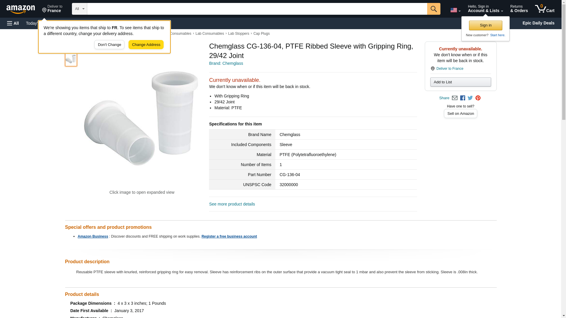 | Feature | CHEMGLA - Sleeve- Teflon- Ribbed- w/ Gripping Ring 29/42 Joi nt Size, EA1 |