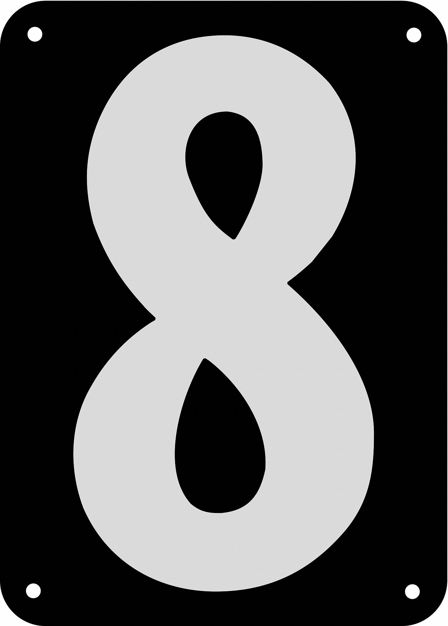 ELECTROMARK Number Card, 8, Silver/Black, 3 in Character Height, 25 PK - 21LA31|FLATSKAR3S8 - Grainger