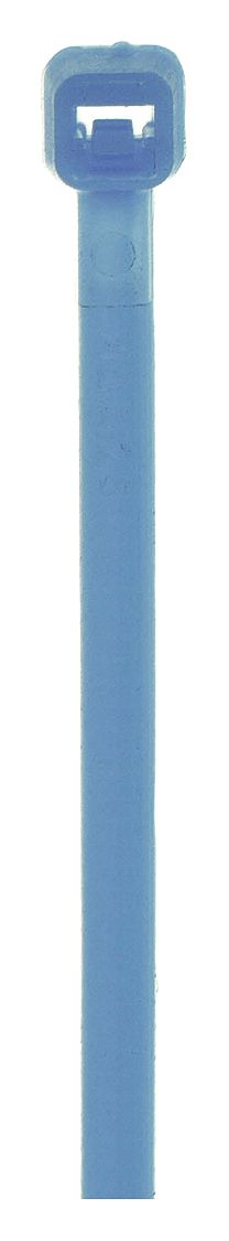 These cable ties feature a distinctive blue color for visual identification on conveyor belts. They are also constructed with a metal-impregnated material for identification by metal detectors. The curved, tapered tips help to provide fast threading speed and easy pickup from flat surfaces. The smooth, round edges also help to simplify use in processing and packaging areas.<br /><br /> Item: Cable Tie<br /> Length - Cable Tie: 7.30"<br /> Approximate Length - Cable Tie: 7"<br /> Indoor/Outdoor: Indoor<br /> Temp. Range: -76 Degrees to 185 Degrees F<br /> Locking Style: Plastic Pawl<br /> Width - Cable Tie: 0.19"<br /> Thickness: 0.05"<br /> Tensile Strength - Cable Tie: 50 lb.<br /> Max. Bundle Dia.: 1.85"<br /> Color - Cable Tie: Blue<br /> Material: Nylon 6/6<br /> Basic Material - Cable Tie: Nylon<br /> UL Type: Not Listed<br /> Design - Cable Tie: Standard<br /> Tool Code: E, F<br /> Metal Detectable: Yes<br /> Standards: RoHS<br /> Cable Tie Duty: Standard<br />