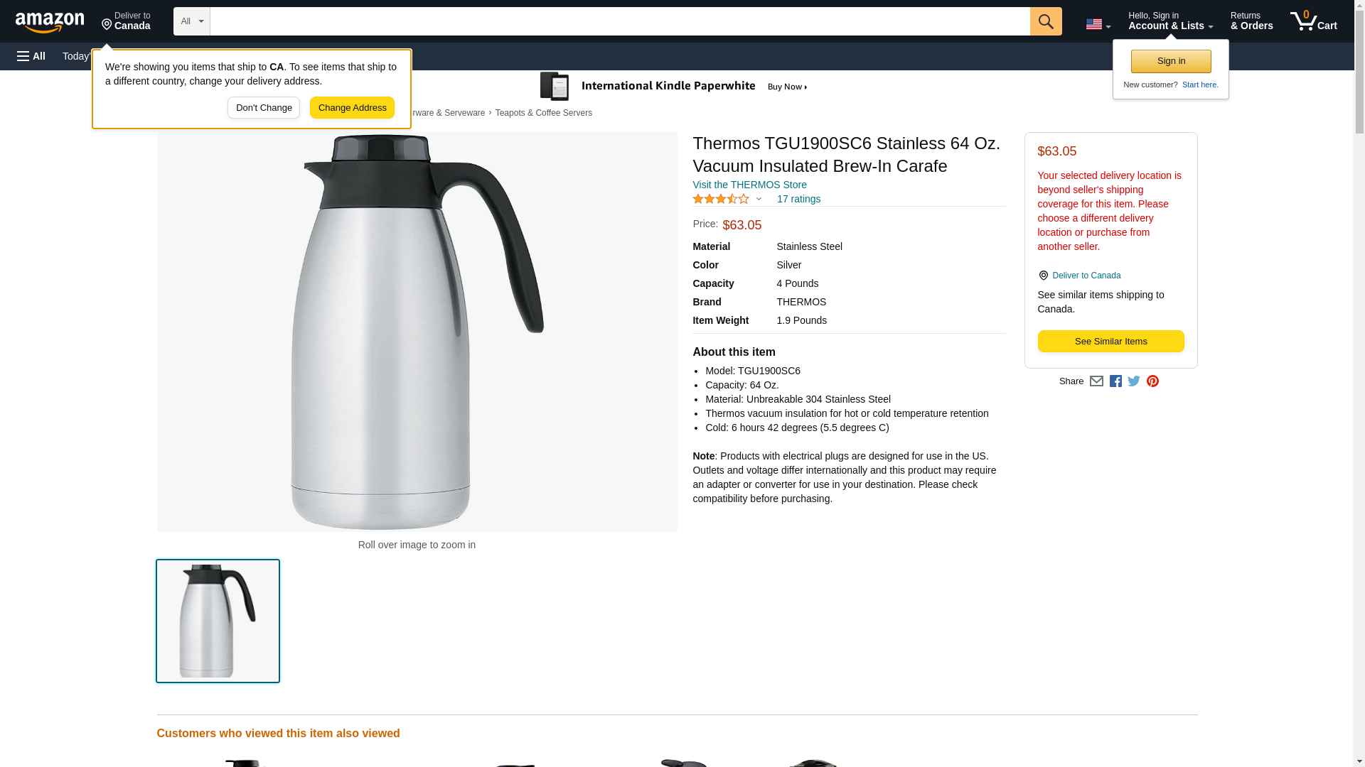 Thermos TGU1900SC6 Stainless 64 Oz. Vacuum Insulated Brew-In Carafe