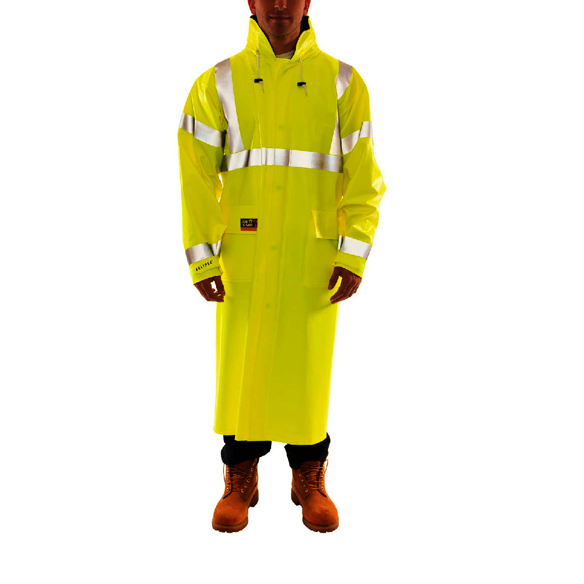 IndustrialSafety.com | Tingley C44129.2X Eclipse Class 3 Arc Flash FR Coat, 48", Attached Hood in Collar, Storm Fly Front with Zipper, Orange, Size: 2X-Large