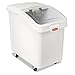 The Rubbermaid Commercial ProSave Ingredient and Food Storage Mobile Bin is a bulk food storage container on wheels. With a slanted front, sliding opening, and 32-ounce scoop, these food storage containers makes it easy to transport ingredients. These bulk food storage containers feature 2 fixed front casters and 2 swivel rear casters that provide superior maneuverability. The mobile bin has a white bottom and clear lid for easy identification of ingredients. Food Container Type: Ingredient Bin/Pail; Material(s): Structural Web Plastic; Capacity (Volume): 30.86 gal; Color(s): White.