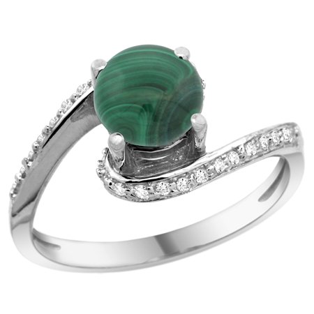 10K White Gold Natural Malachite Swirl Design Ring Diamond Accent Round 6mm, 1/2 inch wide