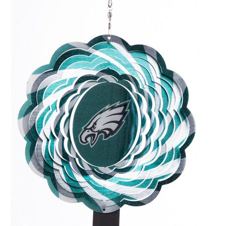 Take a time out and enjoy our licensed spinners, hanging and slowly turning with the slightest breeze. Adorned with your favorite team logo and colors and averaging 10", our spinners are constructed of durable powder-coated metal assuring years of enjoyment. They are sure to look perfect hanging from a tree or a hook helping you to wind down and relax.
