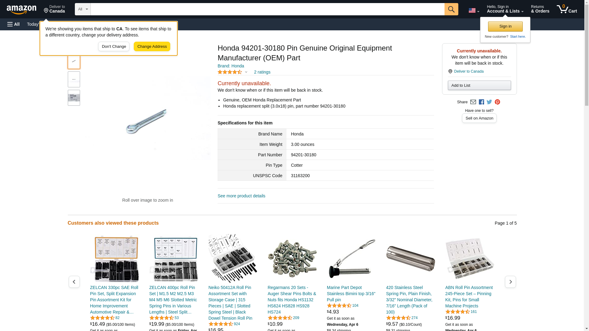Honda 94201-30180 Pin Genuine Original Equipment Manufacturer (OEM) Part