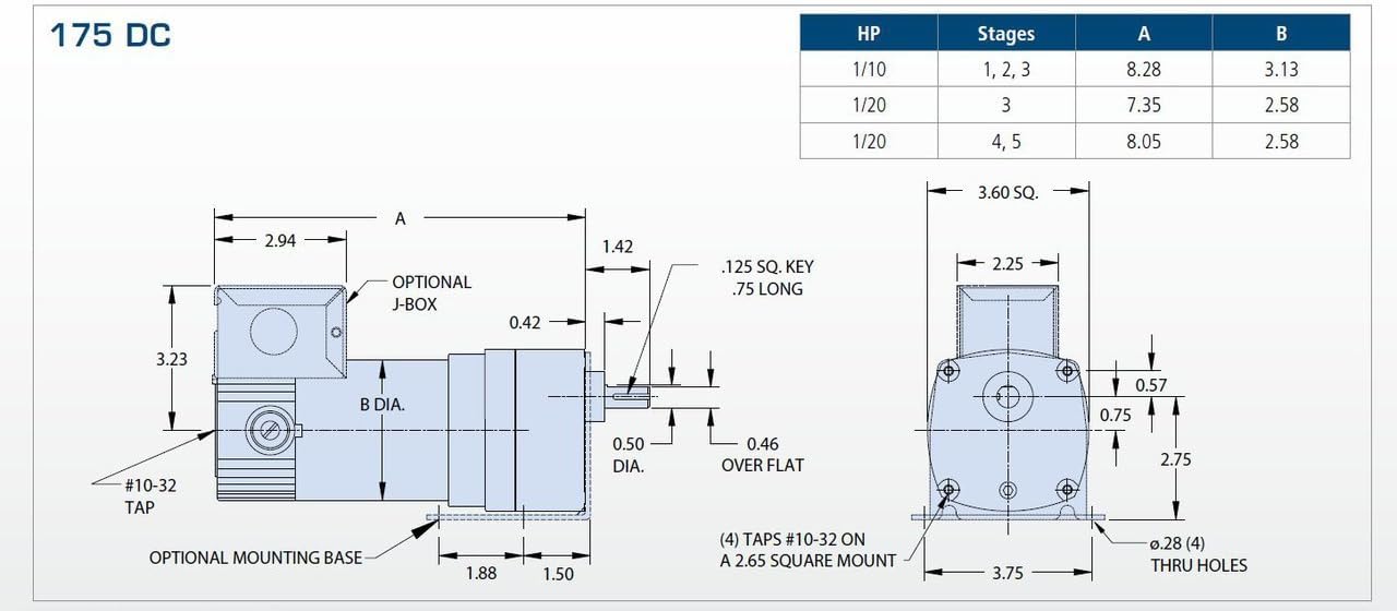 | Feature | 175 Series DC Parallel Shaft Gear Motor - Subject to factory availability-email or call for availability |