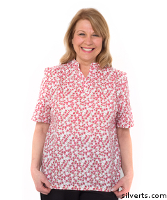 Silverts 241000504 Cotton Adaptive Back Snap Blouses For Women - Handicap Clothing - Extra Large, Pink Flower