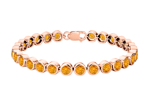 Fine Jewelry Vault UBBRAGVR600BZCT 14K Rose Gold Vermeil in Sterling Silver Bezel Set Citrine Tennis Bracelet 25 Carat T