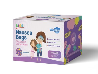 WeCare Dinosaurs Kids' Disposable Emesis Bag for Nausea and Motion Sickness, Multicolor (WC-EMES-D-2 | Quill.com