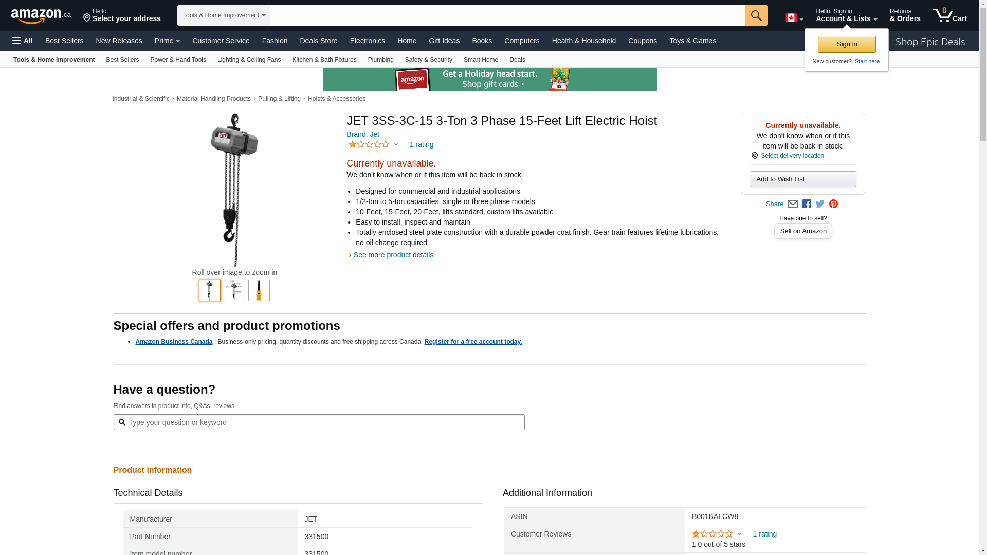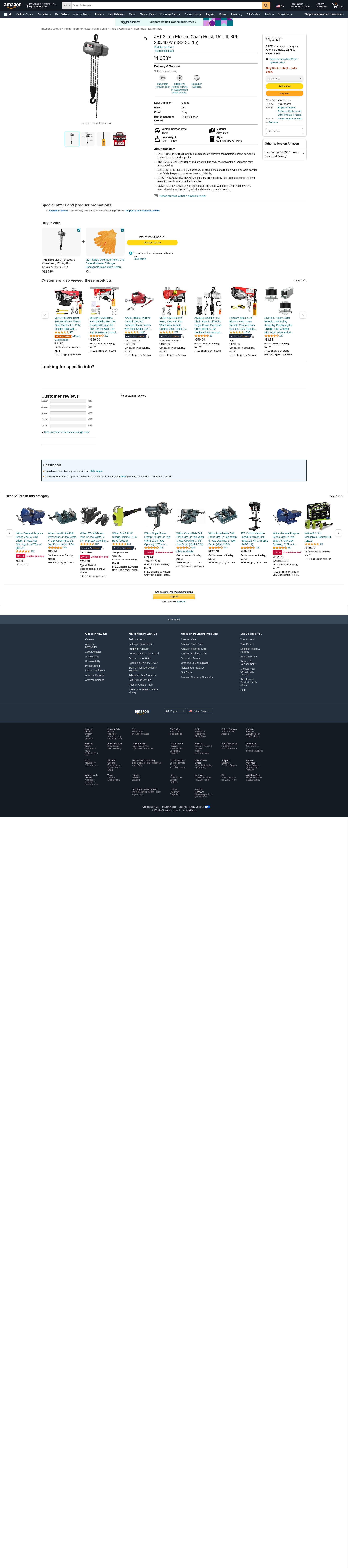 JET 3SS-3C-15 3-Ton 3 Phase 15-Feet Lift Electric Hoist
