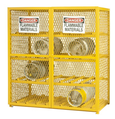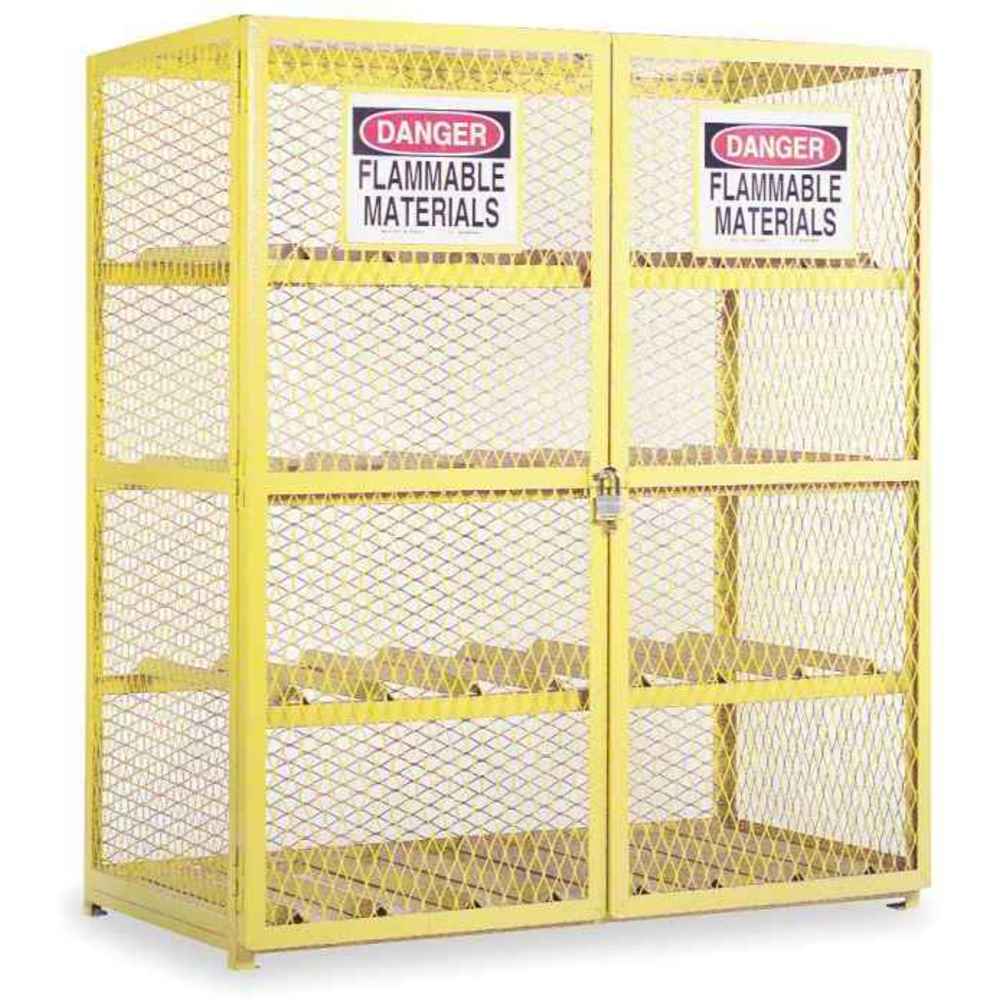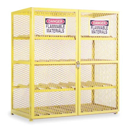 Durham Steel/Iron Horizontal Cylinder Storage Cabinet, EGCC16-50, 16 Cylinder Capacity, 30" Length x 60" Width x 71-3/4" Height, Yellow Powder Coat Finish