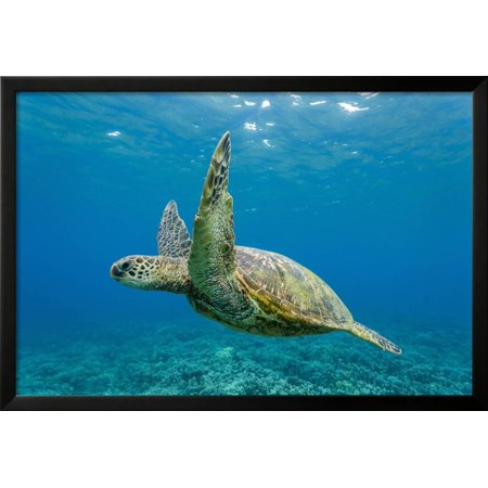 <ul> <li>Title: Green Sea Turtle (Chelonia Mydas) Underwater, Maui, Hawaii, United States of America, Pacific</li> <li>Artist: Michael Nolan</li> <li>Product Type: Framed Art Print</li> <li>Framed in SOHO Black</li> <li>Arrives ready-to-hang for fast, simple installation</li> <li>Framed Size: 38x26 in.</li> <li>Handcrafted in the USA</li> </ul>