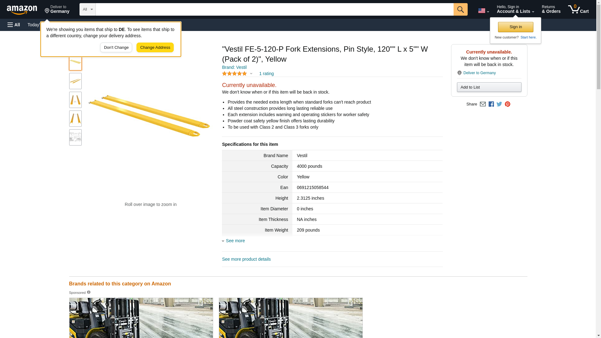 Order FE-5-120-P by Vestil FE Series Fork Extension Pin Style - US Mega Store