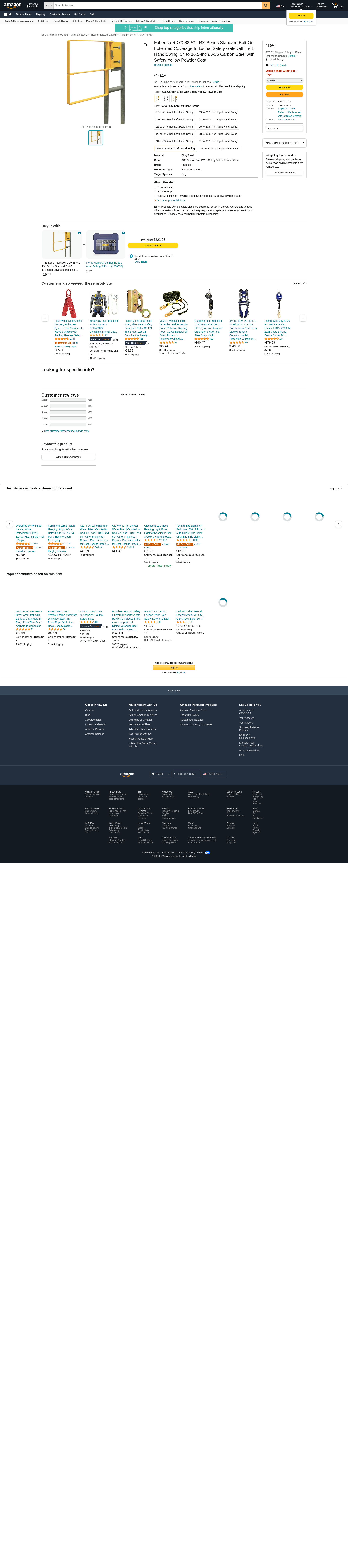 Fabenco RX70-33PCL RX-Series Standard Bolt-On Extended Coverage Industrial Safety Gate with Left-Hand Swing, 34 to 36.5-Inch, A36 Carbon Steel with Safety Yellow Powder Coat